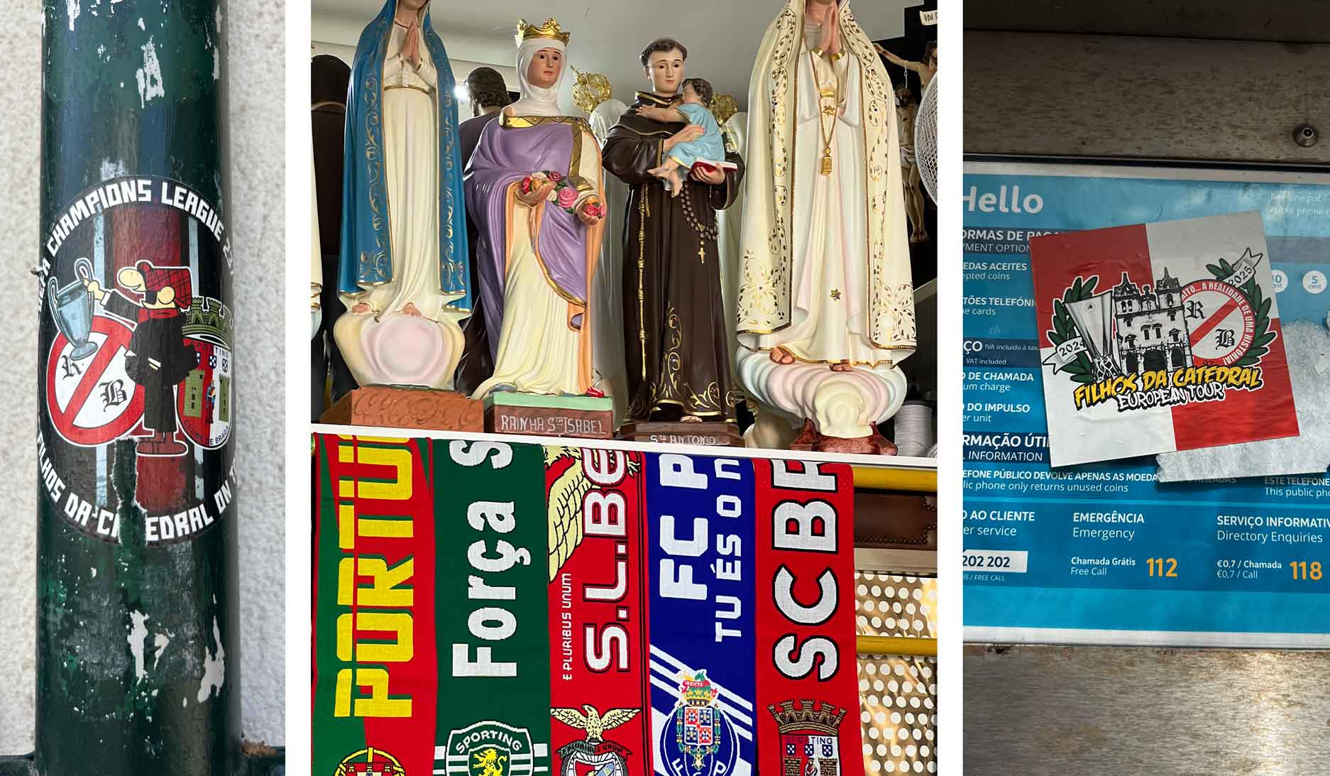 Y es que el Estadio Municipal de Braga tiene una grada habitada por dos grupos: Red Boys Braga (fundados en 1992) y Ultras Bracara Legio (surgidos unos años después, en 2003). Ambos grupos se colocan juntos lo que hacen que el foco de animación del estadio sea muy fuerte. Y aunque en número no sean los más grandes de Portugal; el ambiente que dieron, por lo menos en este partido, fue digno de admirar. Botes, bengalas, un “cubregradas” y muchos cánticos y coreografías. Mucha gente con el material de dichos grupos, un fanzine editado (cosas que nos sorprendió) y miles de pegatinas decoran los alrededores del estadio, cosa que también nos llamó la atención, porque más allá del arte urbano nuestro viaje no había estado marcado por ver muchas pegatinas de los grupos locales de cada ciudad que visitabamos. Lo que también nos llamó la atención fueron las cientos de de pegatinas (y alguna que otra pintada) que los ultras del Levki de Sofía, equipo que visitó Braga en la segunda ronda clasificatoria de la Europa League, habían dejado por su paso por la ciudad.