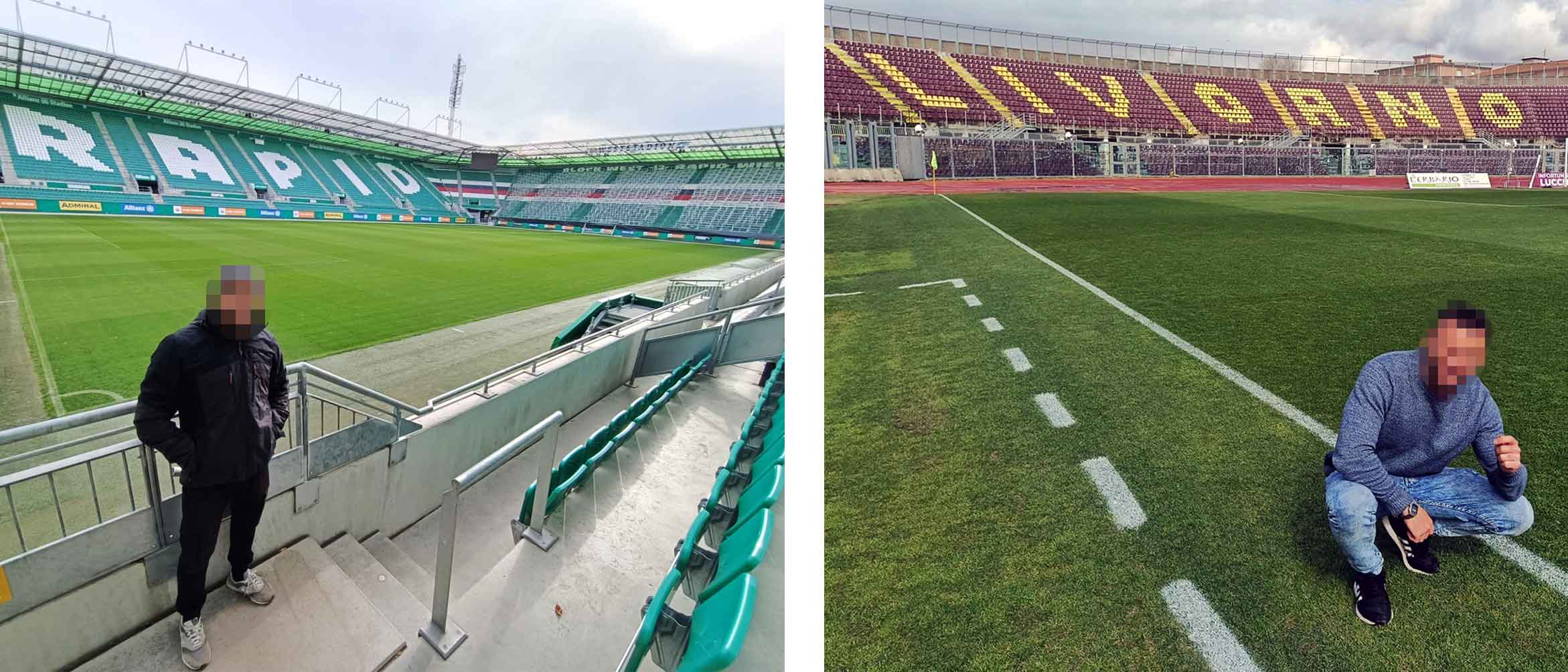 Porque aquí viene el principal escollo de este enredo: conseguir entrar dentro del estadio. No siempre es fácil, a veces imposible. La frustración de saber que vienes de tan lejos, que seguramente no vas a volver a ese lugar, y no conseguir entrar, la conocemos bien los que hemos dado 4/5 vueltas a un estadio intentado localizar infructuosamente una falla en la seguridad del recinto, un trabajador del club que se apiade y te deje entrar 1 minuto metiéndote prisa… para darte de bruces con un rotundo ¨No possible¨ y quedarte con cara de tonto fuera. Pero es parte del juego, se asume y lo compensa la cantidad de veces que hemos salvado esas barreras y hemos llegado hasta el lugar donde el olor a césped recién regado y cortado te muestran que has completado la misión con éxito. La maravillosa sensación de avanzar por un vomitorio sabiendo que ya solo unos pocos pasos te separan de acceder hasta la cocina, muchas veces con la adrenalina de saber que si has entrado sin permiso en cualquier momento escucharás un grito mandándote a la calle. ¨Corre, corre, échame una foto aquí¨ le dices con voz nerviosa a tu colega de expedición mientras éste está embobado mirando la imponente grada vacía que acabamos de descubrir sobre nuestras cabezas. Mis compañeros del proyecto ‘Stadium Collection´y la gente que me ha acompañado en alguna de estas múltiples expediciones saben bien de lo que hablo.